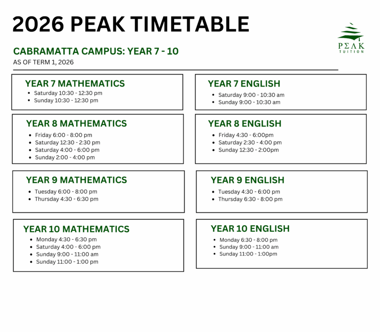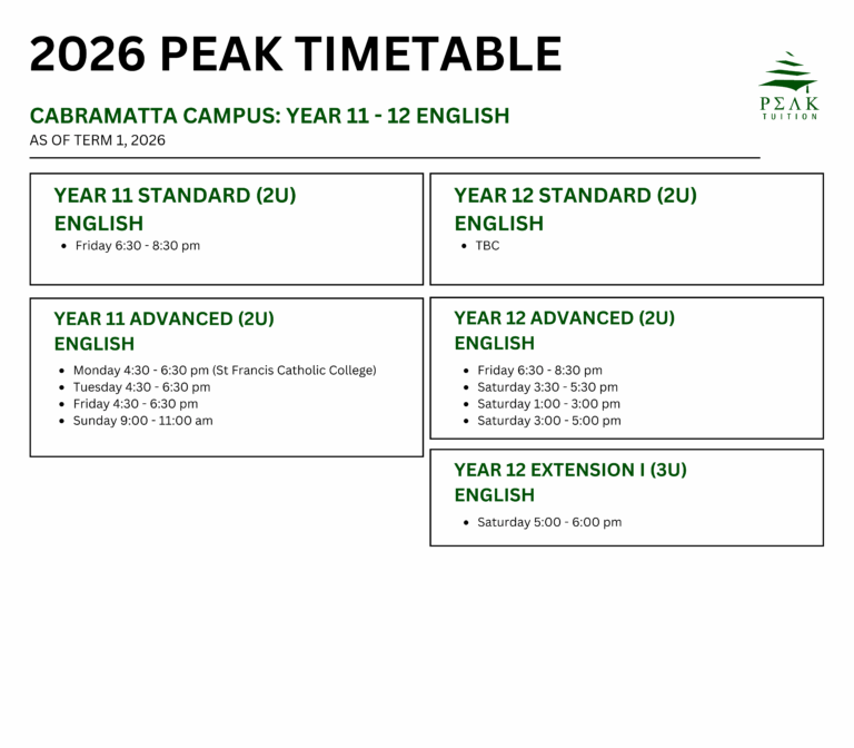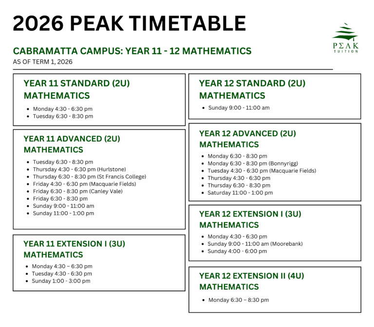 Year 11 – 12 Chemistry/Physics (PEAK HSC)