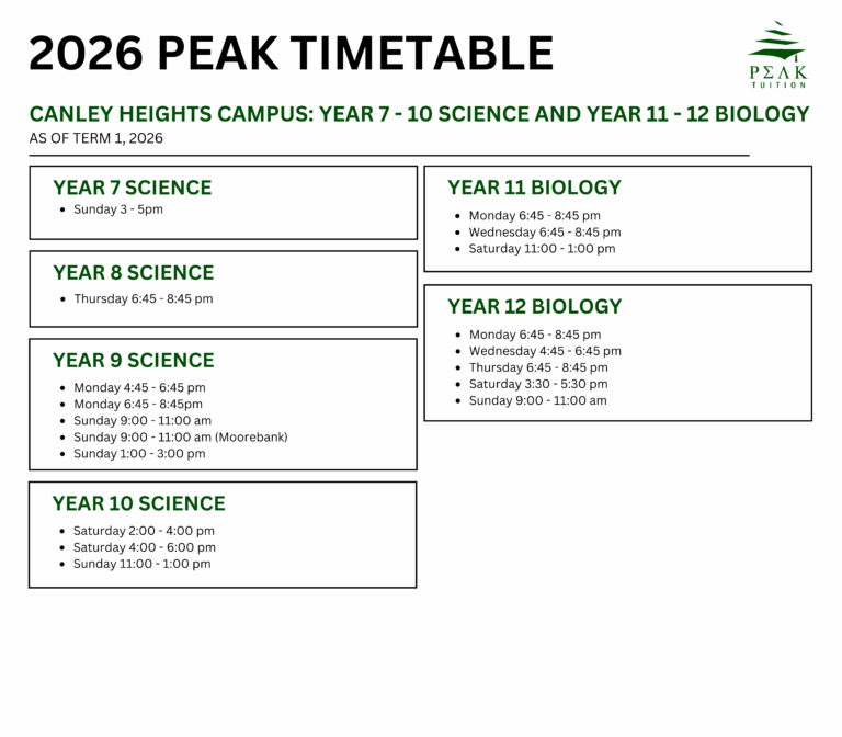 Year 11 – 12 Chemistry/Physics (PEAK HSC)